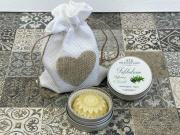 Das Geschenkset beinhaltet ein Aluminiumdöschen Fußbalsam Pfefferminze & Lavendel. Er ist eine Wohltat für unsere ständig beanspruchten Füße, pflegt nachhaltig und belebt mit rein natürlichen Inhaltsstoffen. Sowie eine feste Handcreme mit Widrosenöl, Beerenwachs, Kakaobutter und feinem Lemon Verbena Duft.