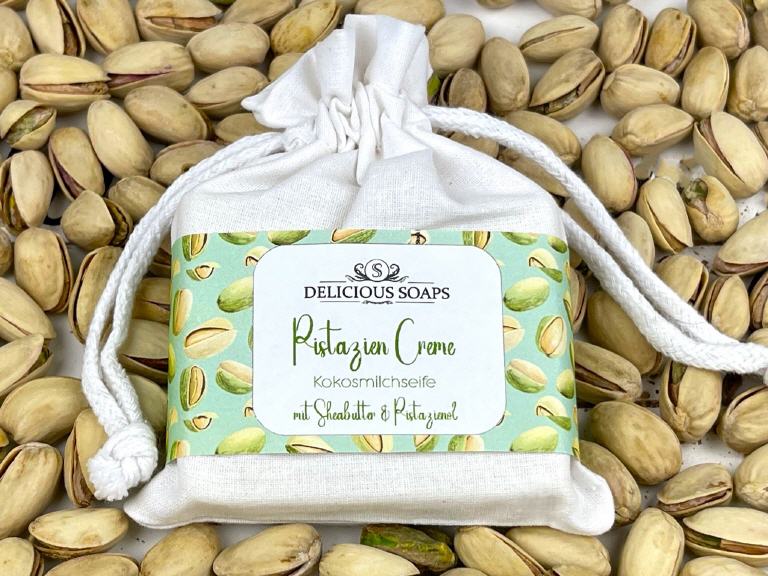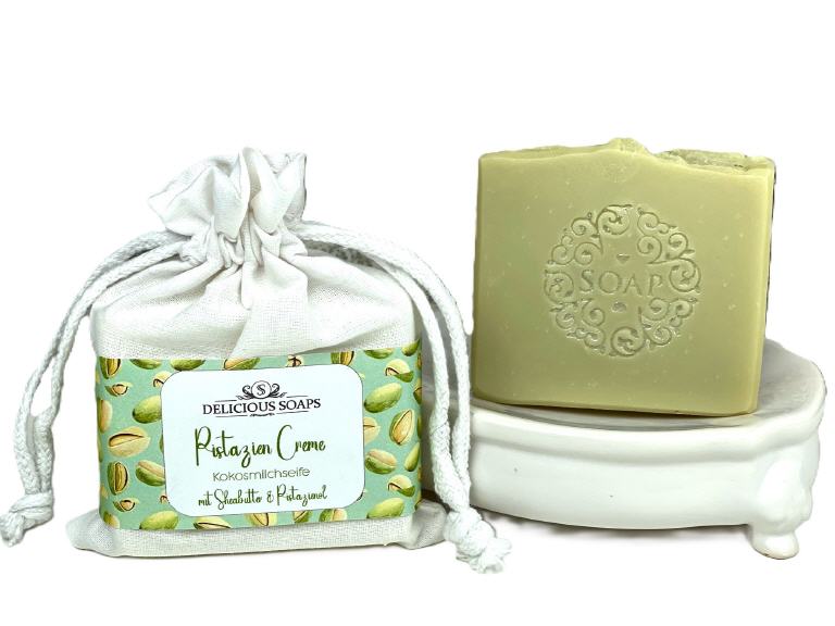 Feinste Sheabutterseife mit Kokosmilch - Die Kombination aus kostbarem Pistazienöl, Bio-Sheabutter & vitaminreichem Olivenöl erzeugt einen himmlisch cremigen & pflegenden Schaum.