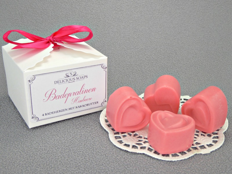 Zart schmelzende Badepralinen mit fruchtig, leckerem Duft frisch gepflückter Himbeeren.