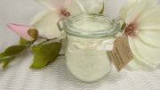 Veganes Milchbad mit Kakaobutter & Meersalz. Kuscheliger Blütenhonigduft verführt die Sinne. Inhalt: 150g im Glas -
