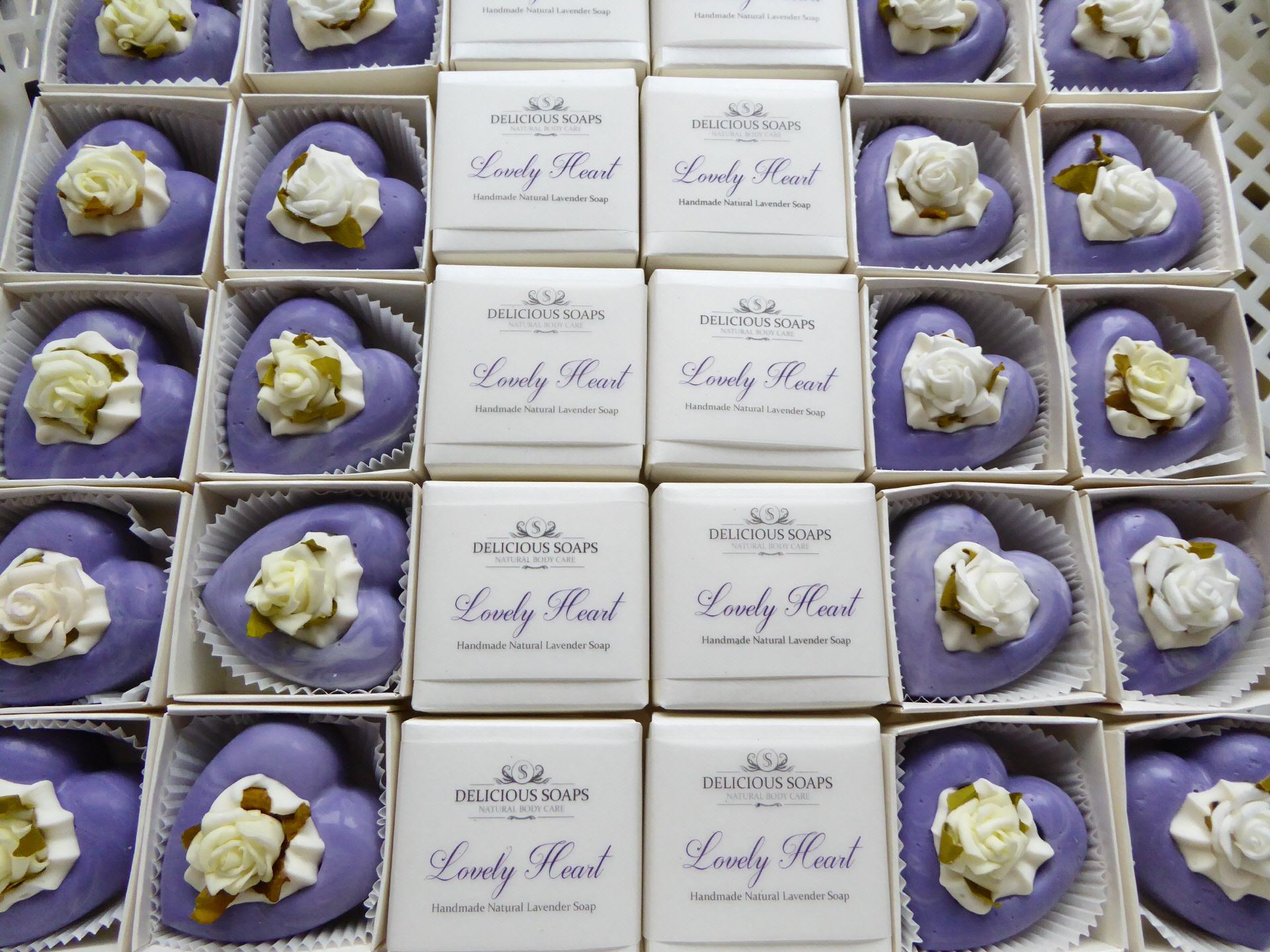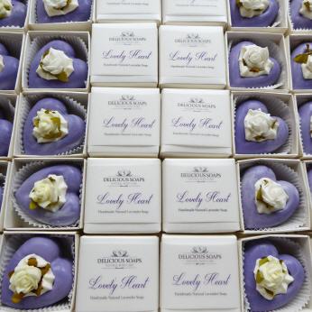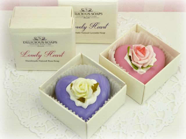 Ganz entzückendes Seifenherz mit himmlischem Lavendelduft oder betörendem Duft Englischer Rosen. Das Herz ziert ein zartes "Sahnetopping" mit einem Röschen.
