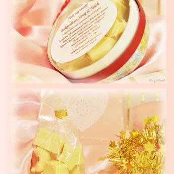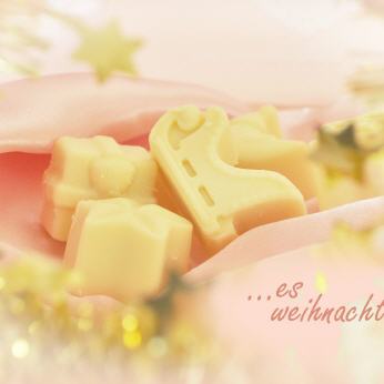 Liebevoll handgefertigte Badepralinen mit Honig Duft in Adventskalender-Schokoladenformen.