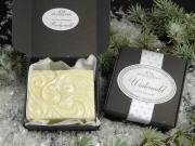 Himmlisch zart duftende Vanilleseife in Herzform - in weißem Organzabeutelchen verpackt.