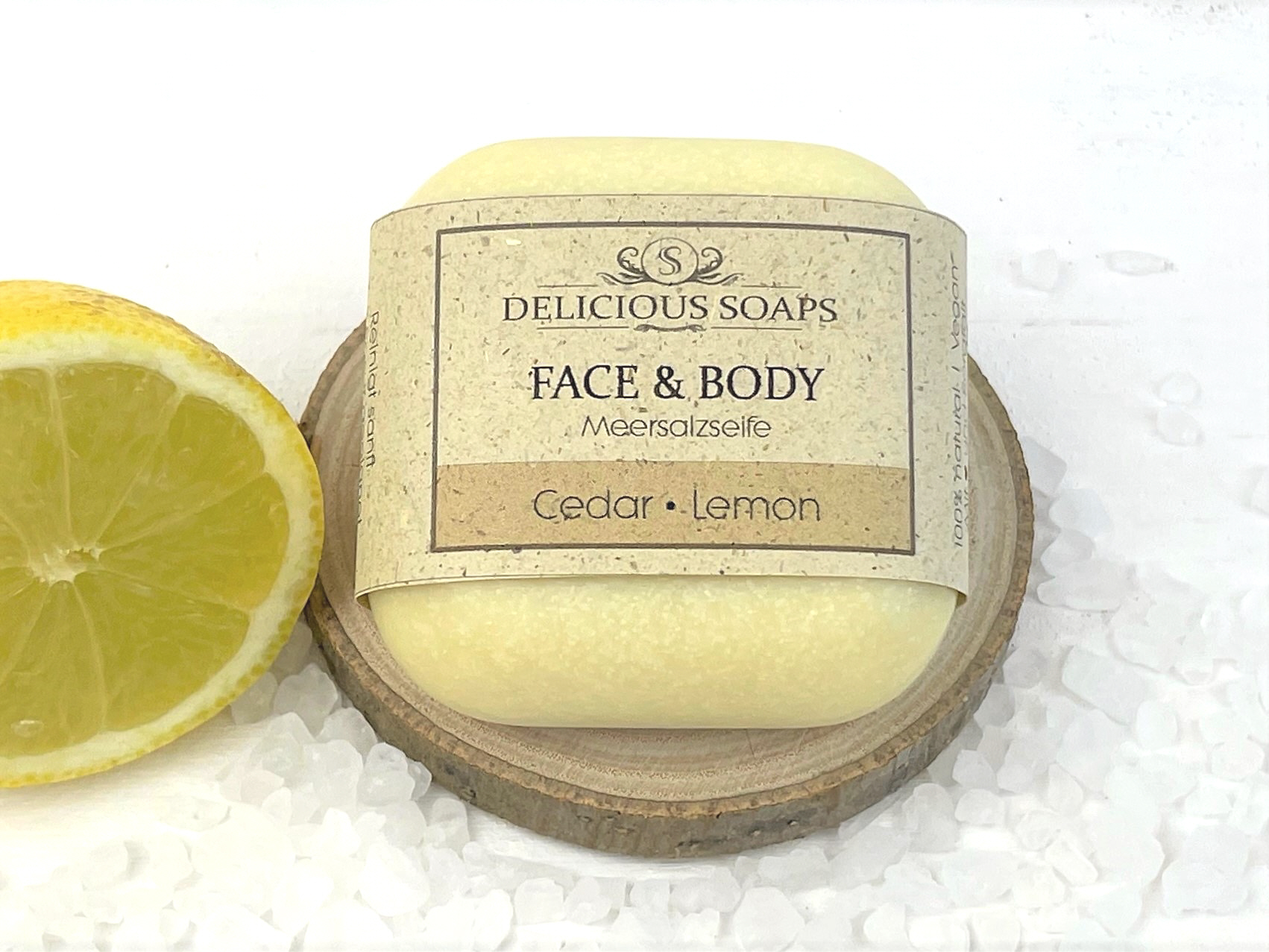 Die Salzseife Lemon & Ceder enthält reichlich Atlantik-Meersalz, welches die Haut mit wertvollen Mineralien aus dem Meer versorgt.