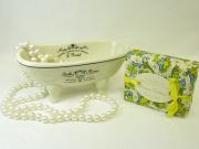 Nostalgisch anmutende, zart cremefarbene Seifenablage in Form einer Badewanne.